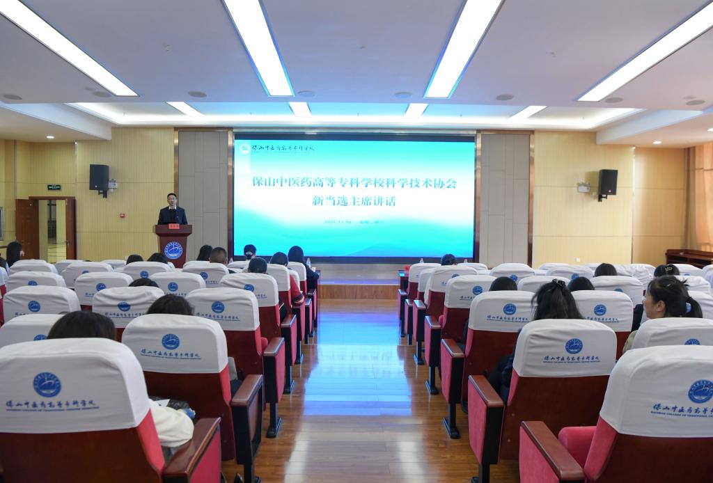 11月4日,保山中医药高等专科学校科学技术协会成立大会暨第一次会员代表大会在学校召开。保山市科学技术协会党组书记、主席谷萍,学校党委书记张山,党委副书记、校长张云富出席大会。