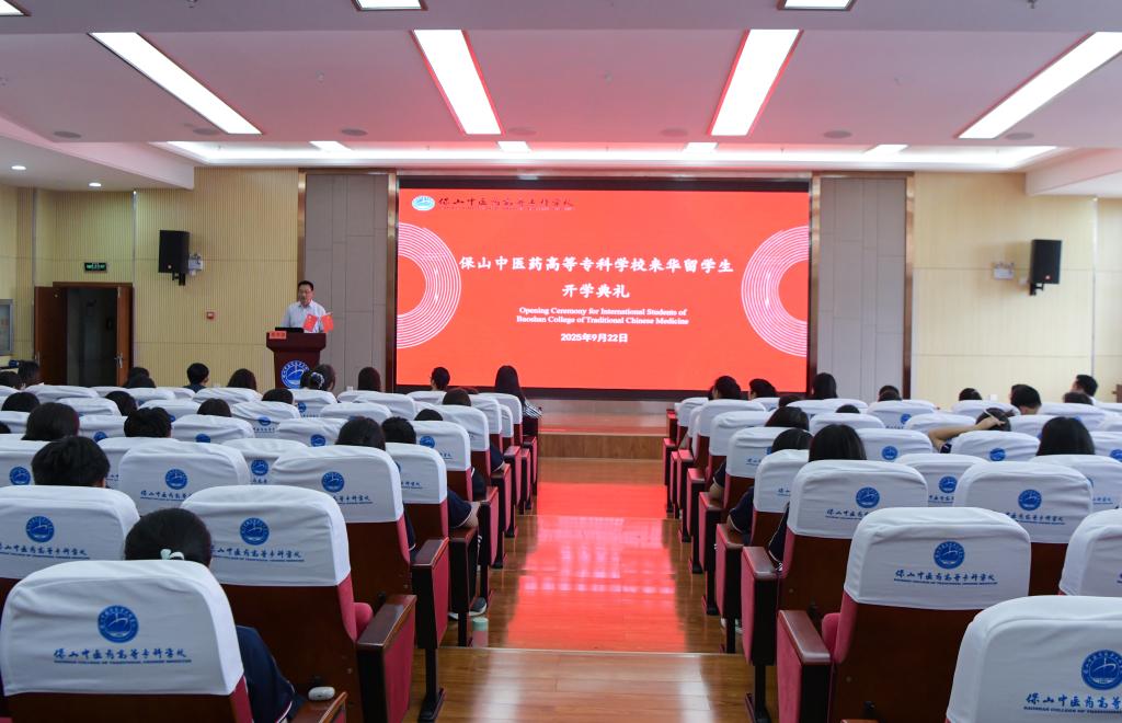 2025年9月22日,保山中医药高等专科学校2025级来华留学生开学典礼隆重举行。这场跨越国界的相聚,以中医药文化为纽带,搭建起交流与成长的平台。开学典礼由校长张云富主持,校党委书记张山与保山市政府外事办公室副主任肖敬敏致辞,向远道而来的留学生们致以热烈欢迎与殷切期许,鼓励他们深耕中医药知识、感受中华传统文化魅力;留学生代表登台分享求学初心与憧憬,展现出昂扬的青春风采。典礼后,全体师生合影留念,中外学子还开展了丰富多彩的文化交流活动,在互动中增进理解、结下友谊。