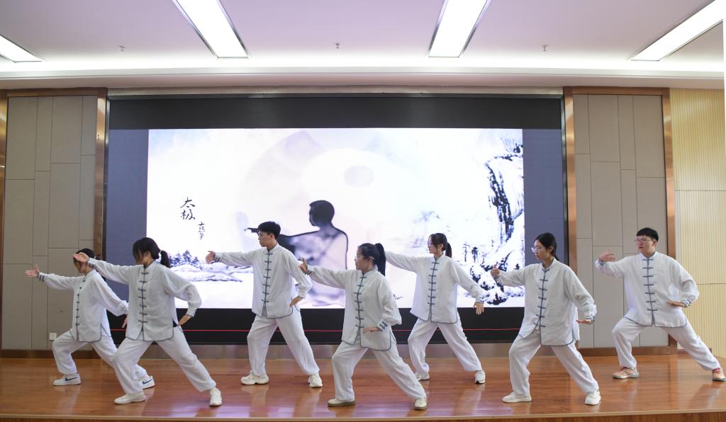 图为中外学生文化交流活动