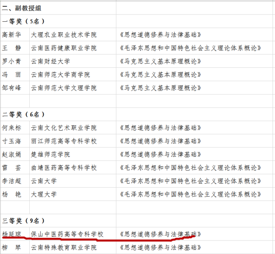 经过激烈的角逐,学校三位思政课教师喜获佳绩,杨延琼老师荣获副教授组三等奖,丰建丽老师荣获青年教师组优秀奖,杨新敏老师荣获“形势与政策组”优秀奖。