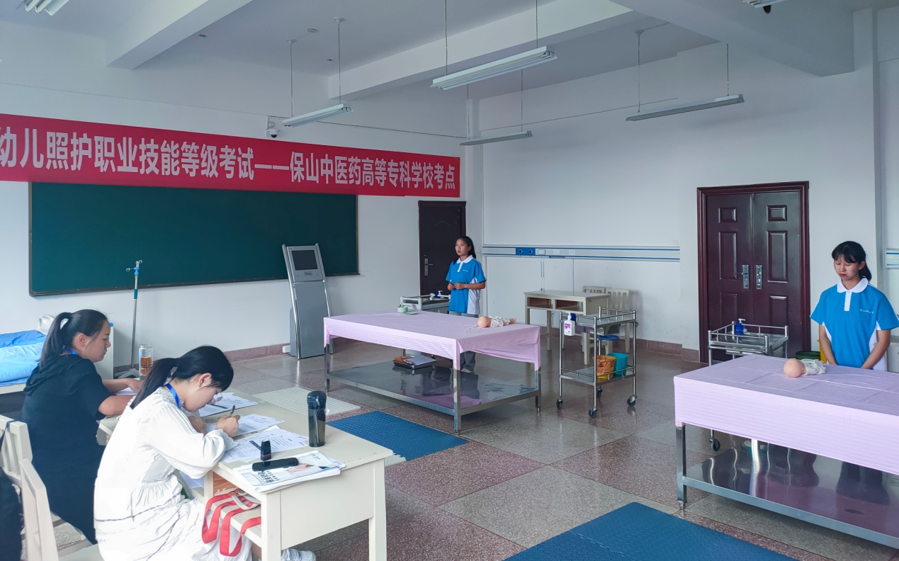 7月10日,2021年教育部1+X“幼儿照护职业技能等级证书”首次考试在保山中医专进行。