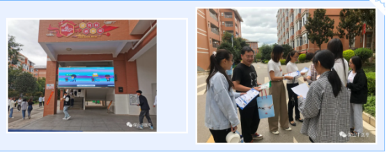 活动形式丰富多样,通过播放电子标语、在食堂前LED显示屏播放宣传视频、在宿舍和食堂周围发放宣传册和口罩等方式营造浓厚的网络安全宣传氛围。