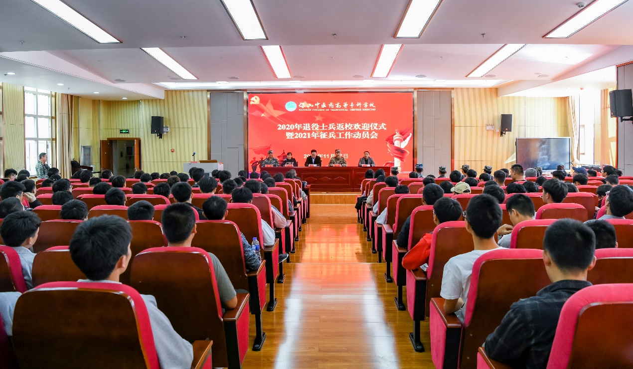 11月27日,保山中医专2020年退役士兵返校欢迎仪式暨2021年征兵工作动员会在图书馆报告厅召开。校党委书记黄鹤平,党委副书记杨朝丽,校党委委员、副校长李智辉,隆阳区武装部政委王峰等领导出席会议。