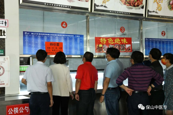杨红琼一行先后对校门管控、食堂食品卫生安全、校内快递站、储备物资等进行了现场查看,了解校内快递管理流程,查看校医室学生就诊记录。