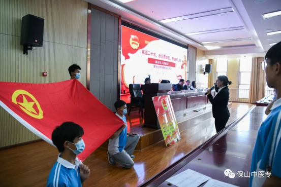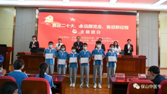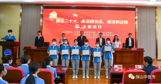 为贯彻落实习近平总书记关于青年工作的重要思想和考察中国人民大学重要讲话精神,纪念“五四”运动103周年暨中国共青团成立100周年,激励广大团员青年建功新时代、奋进新征程。4月28日,中共保山市委宣传部、市文明办、共青团保山市委、保山中医专联合举办“喜迎二十大、永远跟党走、奋进新征程”主题团日线上线下活动,市文明办专职副书记段显洪,学校党委书记黄鹤平,党委副书记杨朝丽,党委委员、副校长杨峥出席活动,活动由杨朝丽主持。