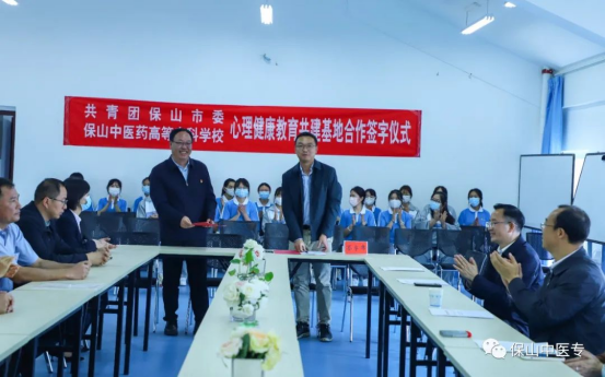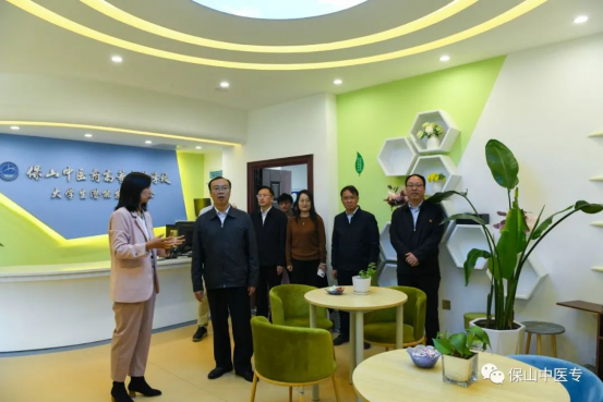 随后,杨军书记一行到学校心理健康教育与咨询示范中心调研,听取学校心理中心建设、运行的情况汇报,共青团保山市委书记冯涛与校党委书记黄鹤平现场签订心理健康教育共建基地合作书。签字仪式上,杨军强调,希望保山中医专心理健康中心充分发挥作用,做出保山教育系统抓师生心理健康的一张名片、一块金字招牌、一个示范。