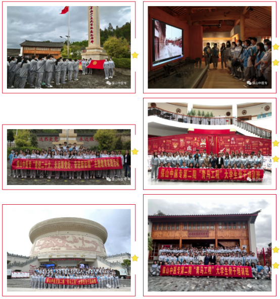 本期“青马工程”大学生骨干培训班为期两天,主要以专题辅导、现场教学及分组讨论为主。培训期间,云南省云岭先锋讲师、云南省青年讲师团成员、杨善洲干部学院教务部副部长李佳璠,学校马克思主义学院院长张有林分别以《学习杨善洲精神,争做新时代的好青年》《在新时代的赶考路上创造新的辉煌——深入学习贯彻党的十九届六中全会精神》为题,围绕主题为培训班开展专题辅导;学员们围绕习近平总书记考察中国人民大学重要讲话精神、习近平总书记给中国航天科技集团空间站建造青年团队的回信、习近平总书记在庆祝中国共产主义青年团成立100周年大会上的重要讲话精神开展了分组讨论;全体学员赴金鸡4.15武装起义纪念馆开展了“喜迎二十大、永远跟党走、奋进新征程”主题教育实践活动,到保山市博物馆参观了《邮票上的时代青年—纪念中国共产主义青年团成立100周年图片展》。