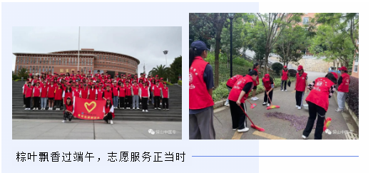 下午,“育传统美德 扬爱国之心——大学生端午联谊活动”如期举行。活动中,章华汉服社、书画社、棋牌社、百草社等学生社团纷纷结合自身特长,通过搭建临时展台、组建传统文化志愿宣传小分队、现场制作药粽等方式,组织学生用心去体验中华传统节日中蕴涵的文化内涵,进一步提升传统文化的吸引力。在学校田径场中,百草社积极号召同学参与活动——包药粽,他们用卡片、艾草包药粽,同学们纷纷在卡片上写下一句句祝福。棋牌社也积极呼吁同学们参与棋局对弈。汉服社也在田径场开展了一系列小活动,其他社团也开展了各式各样的活动,充分丰富了同学们的课外生活。“粽叶飘香过端午,志愿服务正当时”,青年志愿者协会开展端午志愿服务活动,为浓情端午又添一份祥和和温暖。
