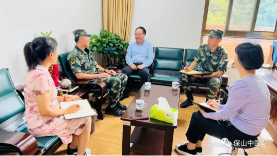 6月27日上午,武警保山支队副参谋长何帅一行2人到我校就2022年学生军训工作事宜进行对接。