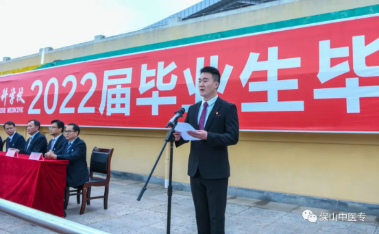 “青春逢盛世,奋斗正当时。”7月1日,保山中医专举行2022届毕业生毕业典礼,为2022届毕业生送上全体教职工的深情祝福与殷切希望。毕业典礼由党委副书记杨朝丽主持,党委书记黄鹤平等党委班子成员,正处级领导干部,各学院教授代表,各部门负责人,毕业班班主任、辅导员及2022届全体毕业生参加毕业典礼。
