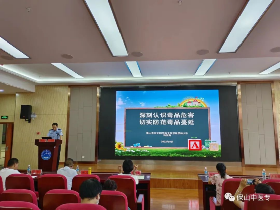保山市公安局禁毒支队禁吸禁种大队大队长冯国海作了毒品预防教育讲座,参会人员现场参观了仿真毒品,进一步强化禁毒意识。教育信息中心主任王应邦,学生工作部副部长、学生处副处长赵佳,心理健康教育与咨询中心主任李艳清,学生处资助科尹云霞分别从学生管理网络信息化、就业创业、心理健康教育、学生资助等方面作专题辅导。
