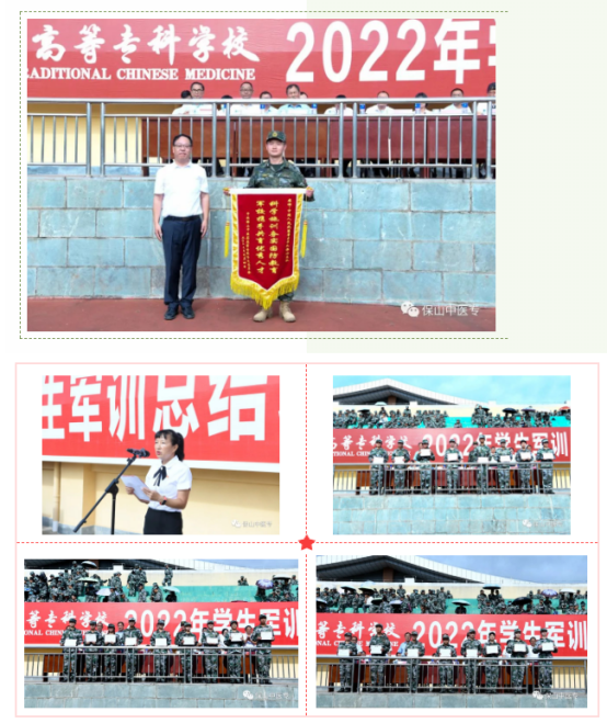 9月4日,保山中医专举行2022年学生军训总结表彰大会,为期14天的军训工作圆满落下帷幕。中国人民武装警察部队保山支队副参谋长何帅,学校党委班子成员出席表彰大会。