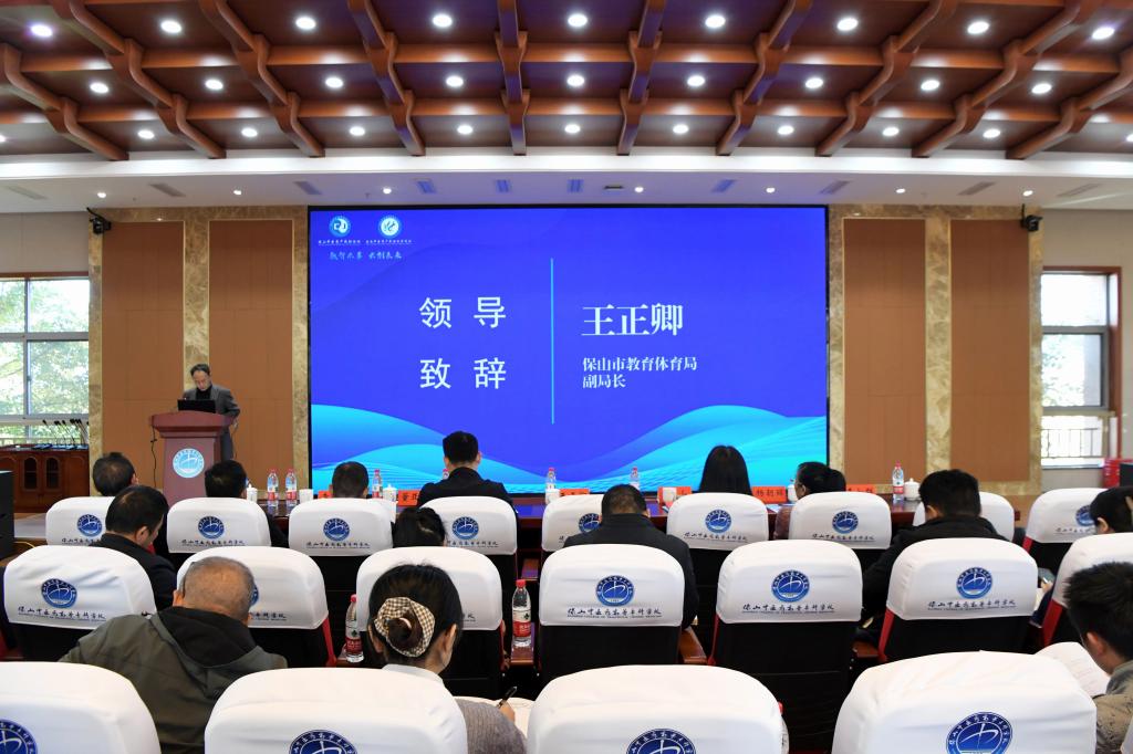 本次会议聚焦“数智本草,云创未来”主题,旨在深入探讨数智技术与中医药教学、科研及产业服务的深度融合路径,为滇西中医药传承创新与产业发展注入新动力。保山市教育体育局副局长王正卿、党委书记张山分别致辞,党委副书记、校长张云富作工作报告。