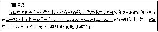 2.项目名称:保山中医药高等专科学校校园安防监控系统点位增补建设项目